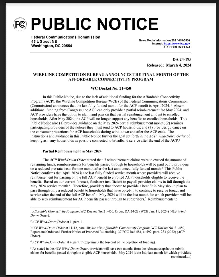 FCC’s Public Notice on Affordable Connectivity Program (ACP)