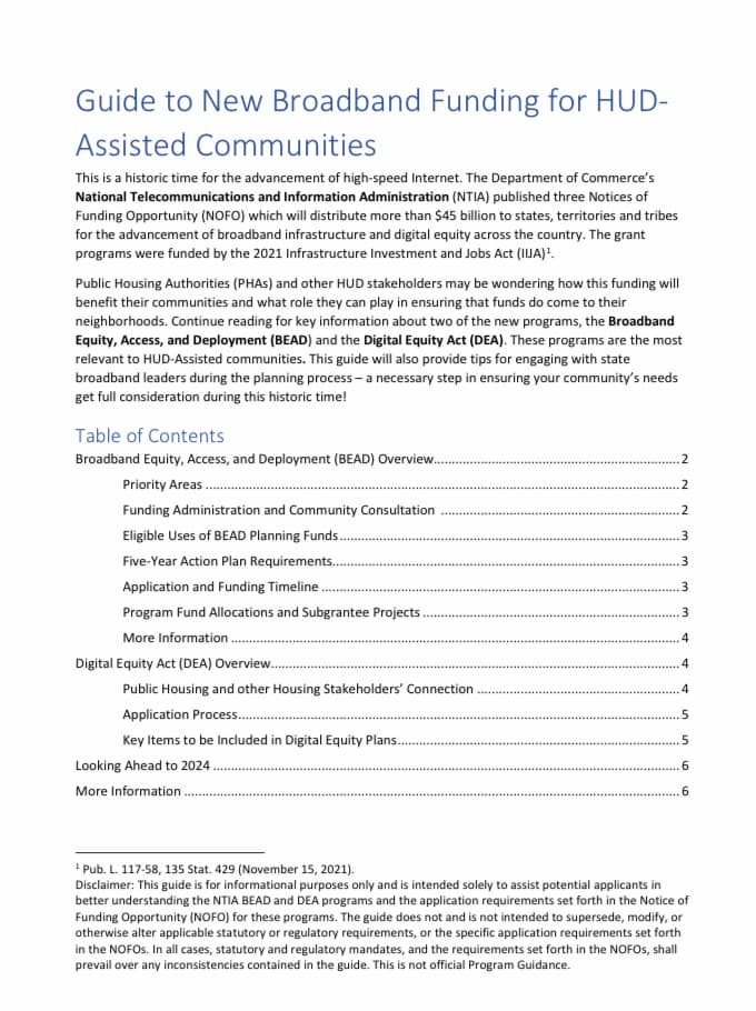 ConnectHomeUSA Guide to New Broadband Funding for HUD-Assisted Communities
